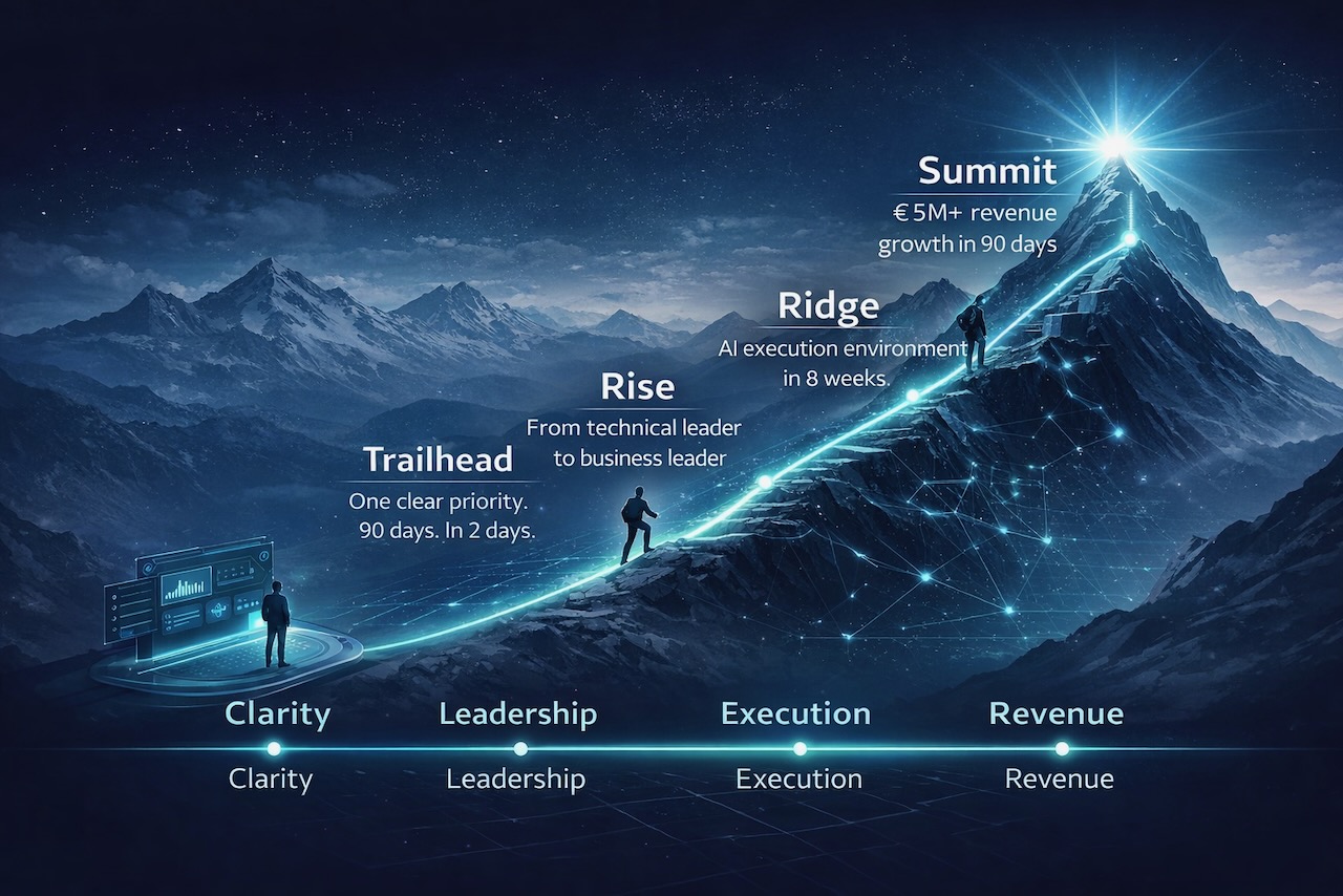 Trailhead is for founders and CEOs of B2B scale-ups (25–80 people) in the EU who have tried OKRs or AI and want clarity without a long consultancy. In two days, you get one clear priority and a 90-day plan. That lands through a fixed-scope Snapshot with a report in five days—and, when it fits, an optional 90-day program or retainer that remains explicit and bounded.